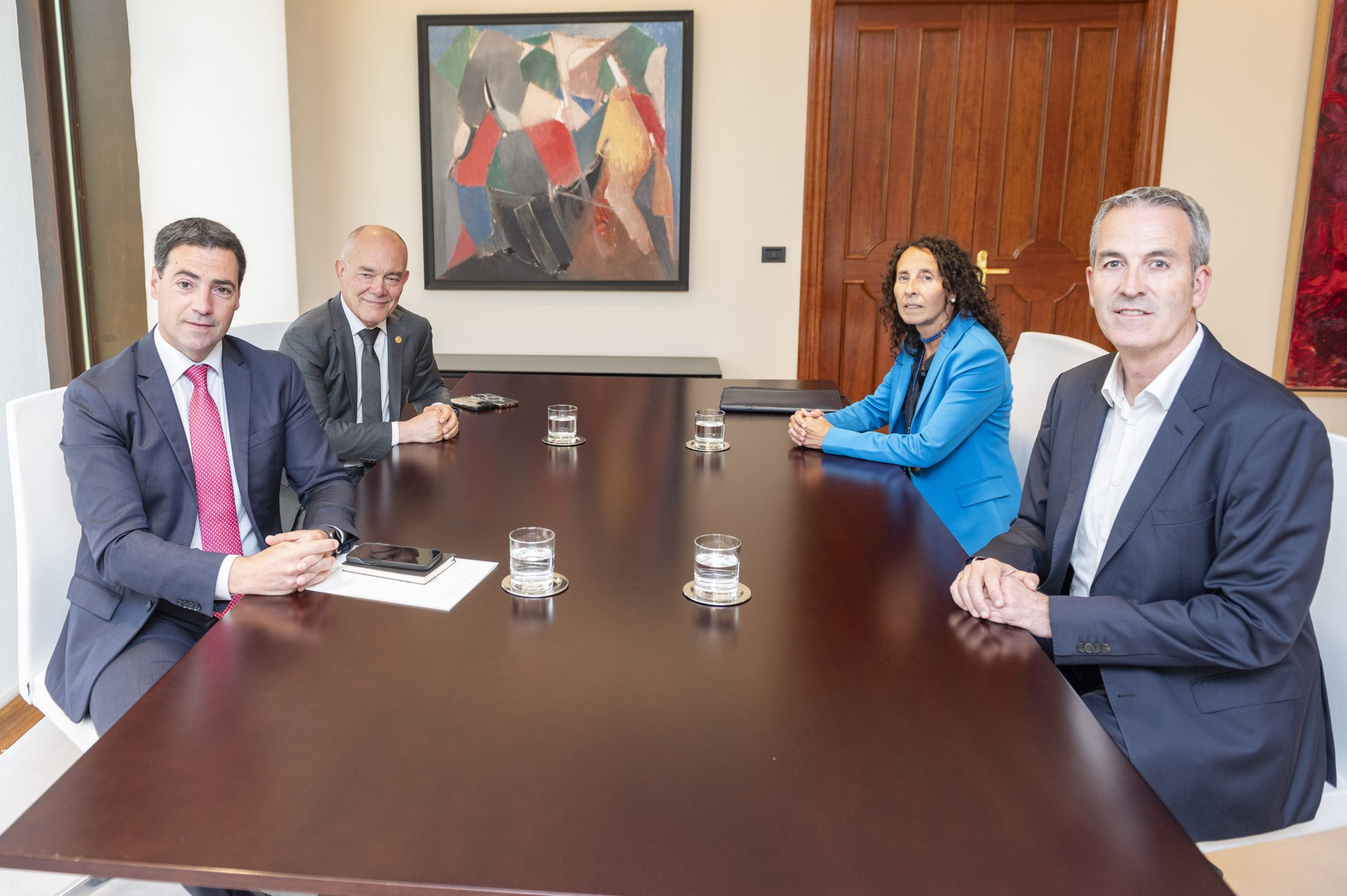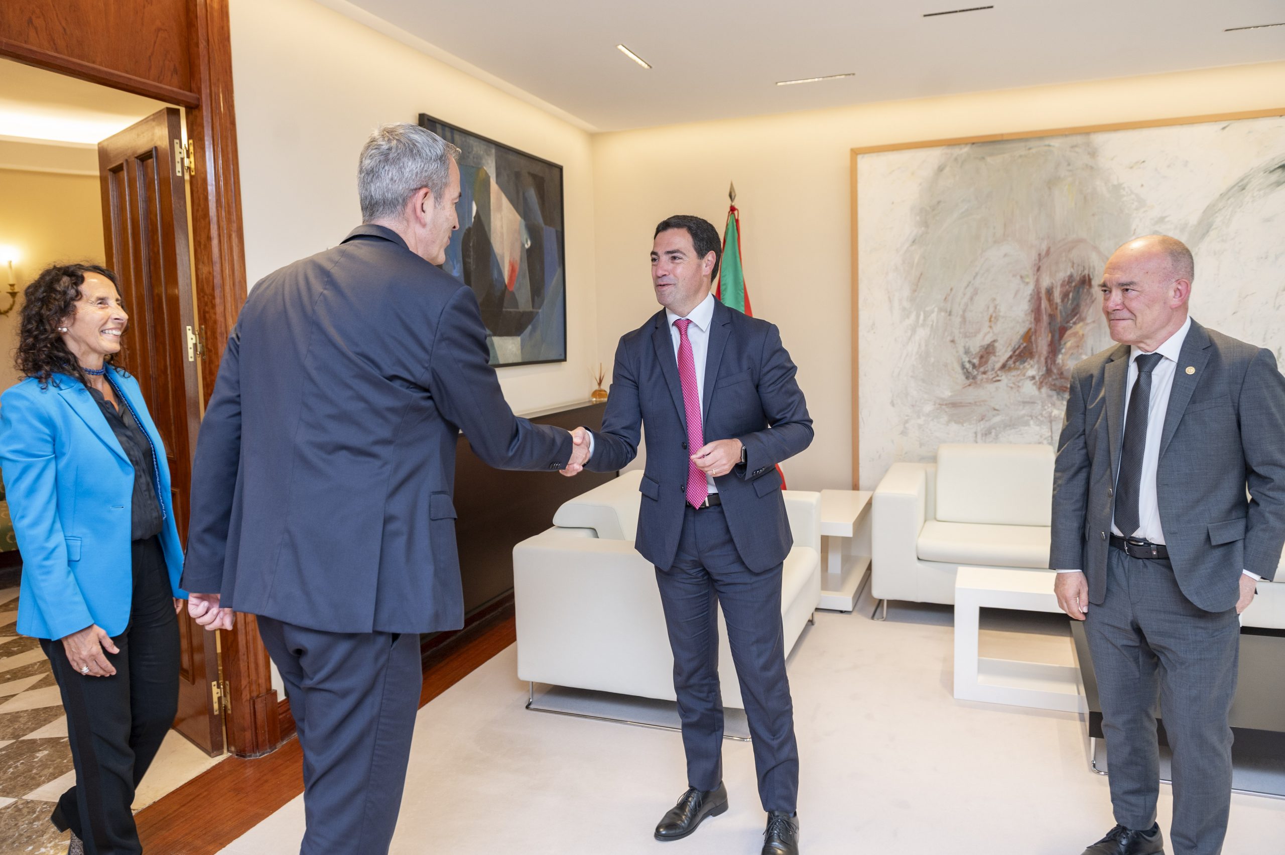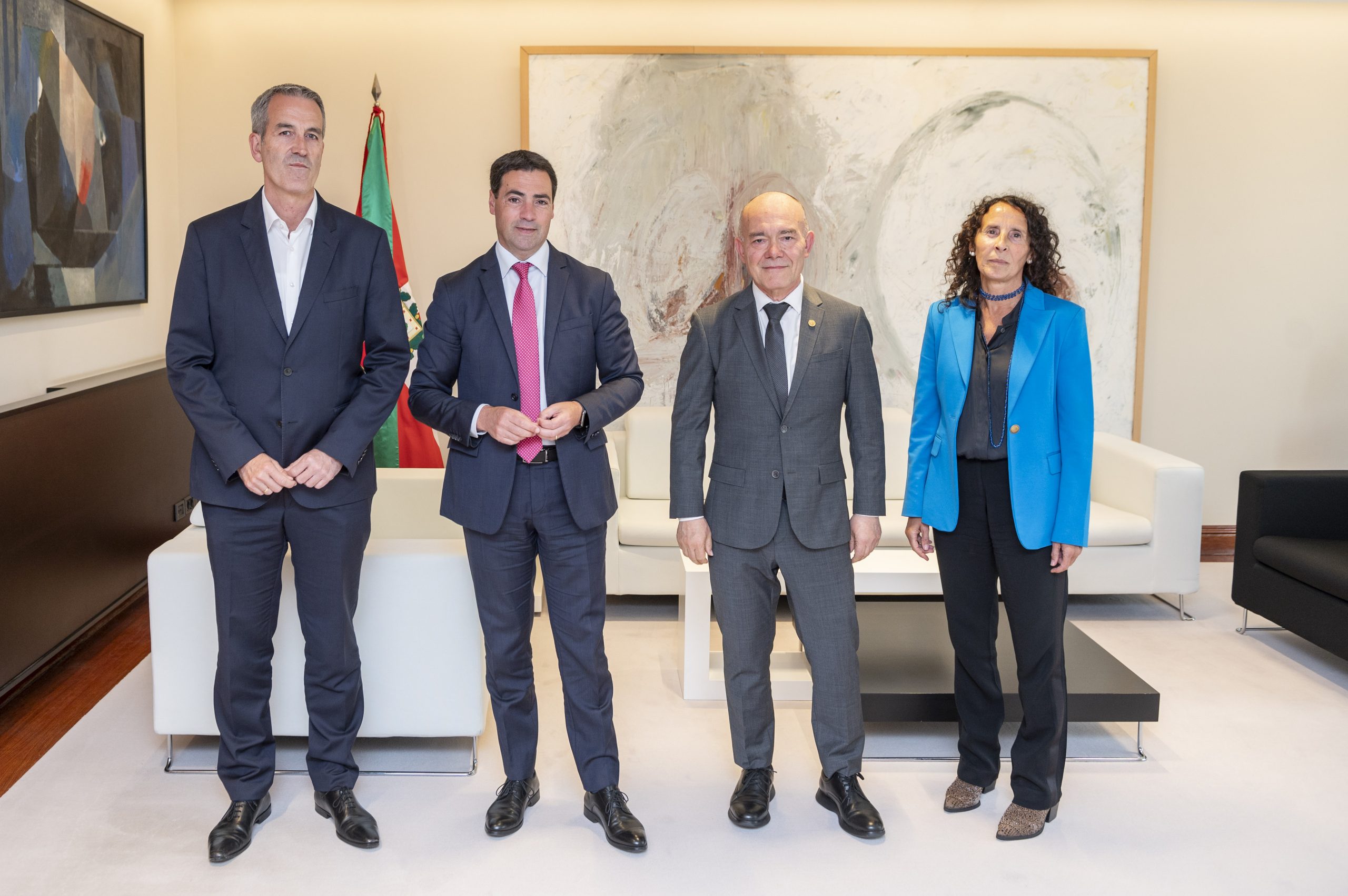 El Lehendakari Imanol Pradales ha recibido al presidente de Innobasque, Imanol Rego, y a la directora general de la entidad, Leire Bilbao, en el encuentro también ha participado el consejero de Ciencia, Universidades e Investigación, Juan Ignacio Pérez Iglesias.